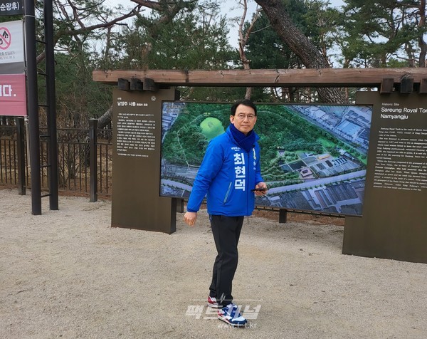 이어 방문한 광릉은 단종의 숙부이자 조선을 이끌었던 왕인 세조와 정희왕후의 능이 자리한 곳이다. 최 후보는 “남양주에는 단종의 슬픈 역사와 세조의 통치가 함께 남아 있다”며 “한 도시 안에 이렇게 다양한 역사 이야기가 공존한다는 것 자체가 남양주의 큰 자산”이라고 강조했다.