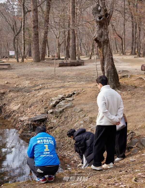 또한 광릉 연못가에서는 개구리 알이 보이자 시민들과 자연스럽게 봄 이야기가 이어졌다. 한 시민이 “벌써 개구리가 깨어났네요”라고 말하자 최 후보는 “경칩이 지나니 자연이 먼저 봄을 알린다”며 “옛 선조들이 만든 24절기의 지혜가 참 정확하다”고 화답했다.