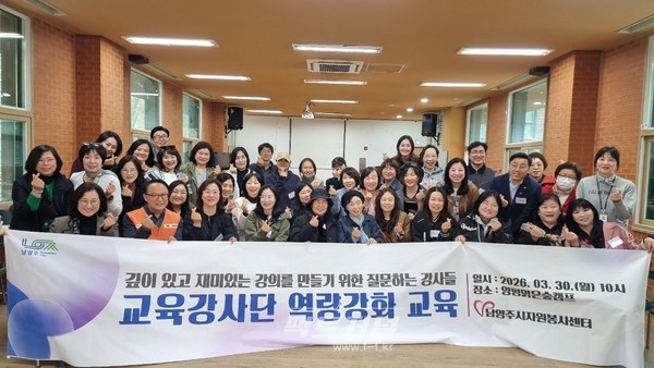 남양주시는 지난 30일 사단법인 남양주시자원봉사센터(이사장 주광덕 남양주시장, 이하 센터)가 양평군 맑은숲캠프 다목적 세미나실에서 교육강사 40여 명을 대상으로 ‘교육강사단 역량강화 교육’을 실시했다고 31일 밝혔다.